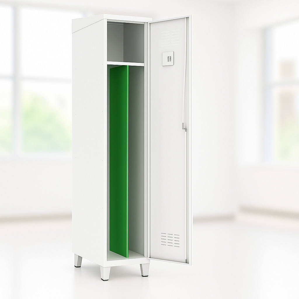Dělící příčka slouží k oddělení pracovního oblečení od civilního oblečení.Dělící příčka do šatní skříně řady H. Rozumné využití prostoru, lepší rozdělení ve skříních.