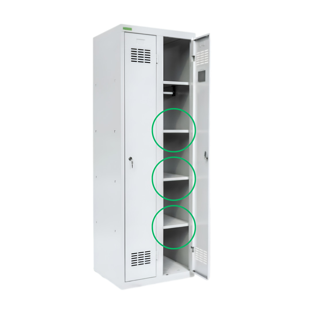 Police do šatní skříně s šířkou přihrádky 400 mm LOCKER SHELF H 400 Dostupnost: Skladem Určení Šatna Parametry Rozmery (h,š,v) 500 × 400 × 20 mm Materiál Ocelový plech Povrchová úprava Práškový lak Váha 0,5 kg Farba RAL 7035 - Světle šedá EAN 8586027654331 361,40 Kč bez DPH 437,29 Kč s DPH Množství Přídavná police do skříně s šířkou 400 mm