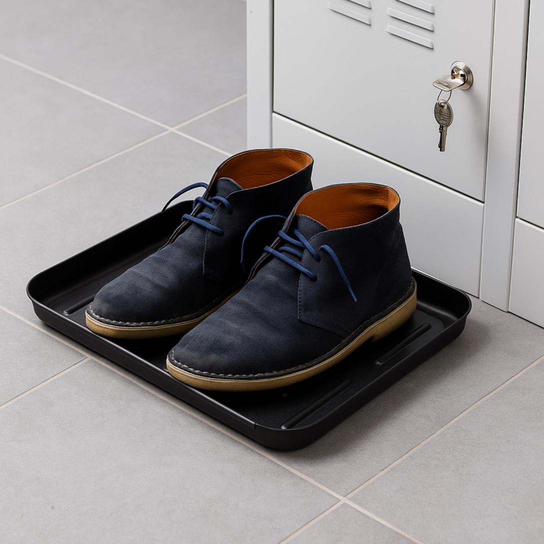 Určení Dílna Domácnost Jídelna Kancelář Nákupní centra Restaurace Šatna Školy Wellness a fitness Zdravotnictví Parametry Rozmery (h,š,v) 350 × 270 × 28 mm Materiál Plast Váha 0,2 kg Farba Black - Černá EAN 8586027654492 205,40 Kč bez DPH 248,53 Kč s DPH Množství Používáním tácku na obuv chráníte skříň před zašpiněním.