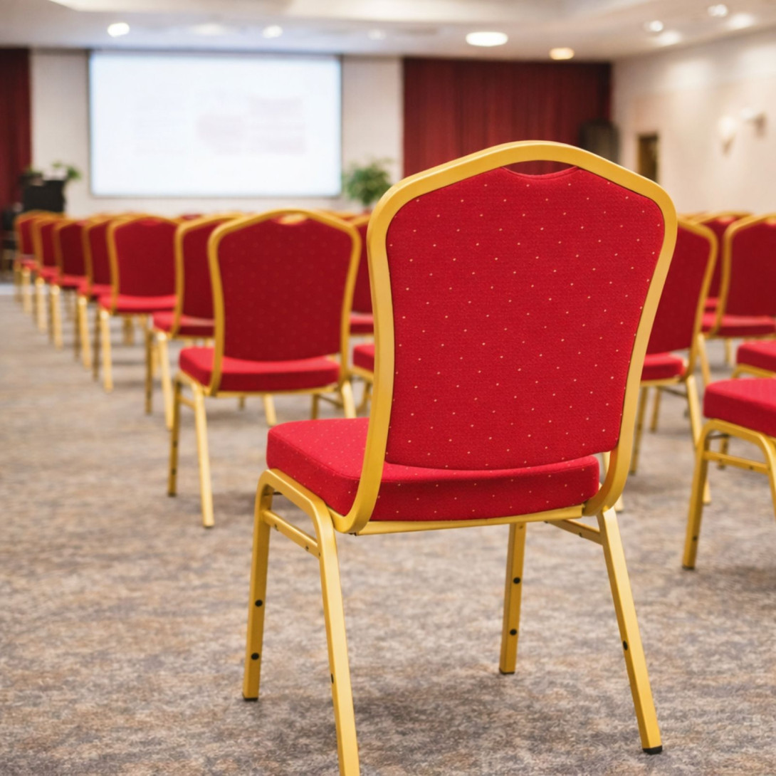 Barva: zlatý rám / červený potahŽidle HALLSEAT jsou elegantní, masivní, mají dlouhou životnost, a navíc jsou i cenově dostupné. Jsou ideální pro intenzivní používání, jsou vhodným řešením do banketových a konferenčních sálů, do hotelů nebo restaurací. Výhodou je, že jsou také stohovatelné, díky čemuž je můžete bezpečně skladovat i na malém prostoru.
