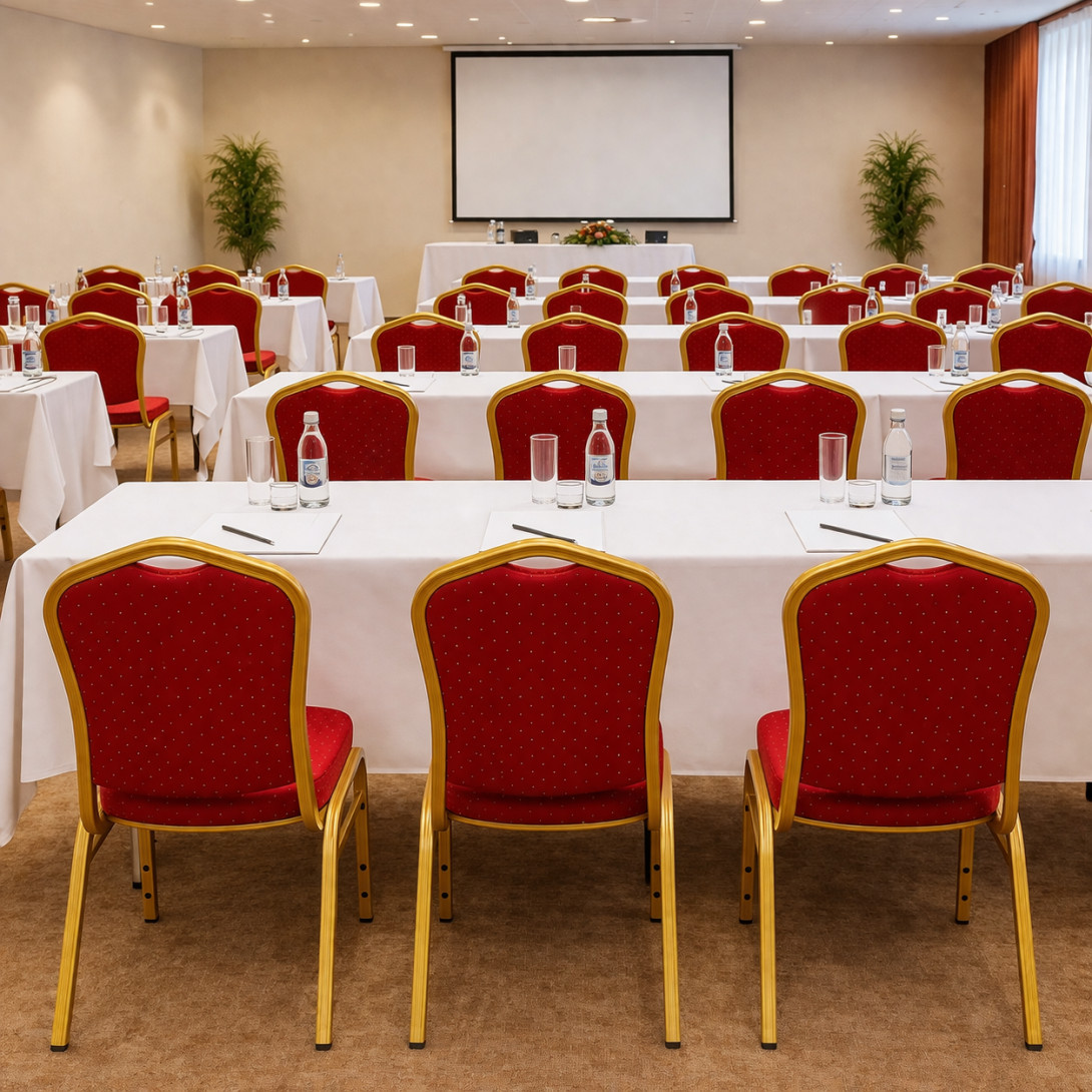 Barva: zlatá/ červenáŽidle HALLSEAT jsou elegantní, masivní, mají dlouhou životnost, a navíc jsou i cenově dostupné. Jsou ideální pro intenzivní používání, jsou vhodným řešením do banketových a konferenčních sálů, do hotelů nebo restaurací. Výhodou je, že jsou také stohovatelné, díky čemuž je můžete bezpečně skladovat i na malém prostoru.
