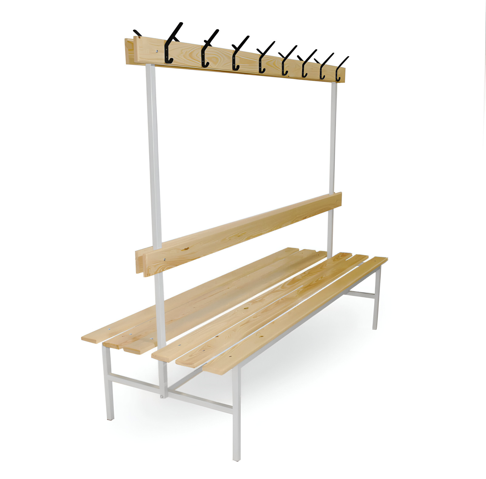 Oboustranná šatní lavice s opěrkou, věšáky a délkou 2000 mm
