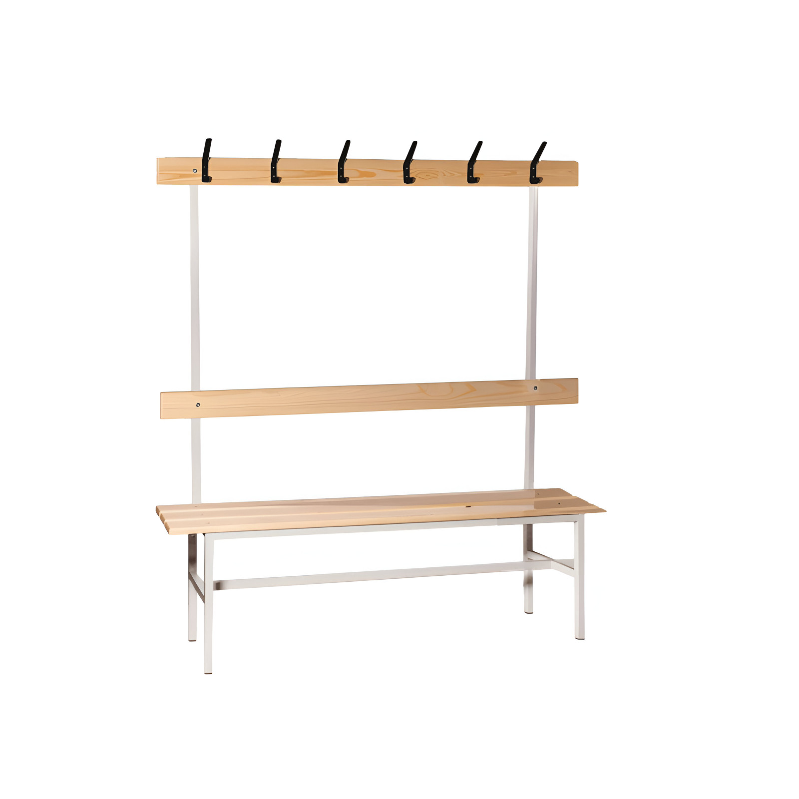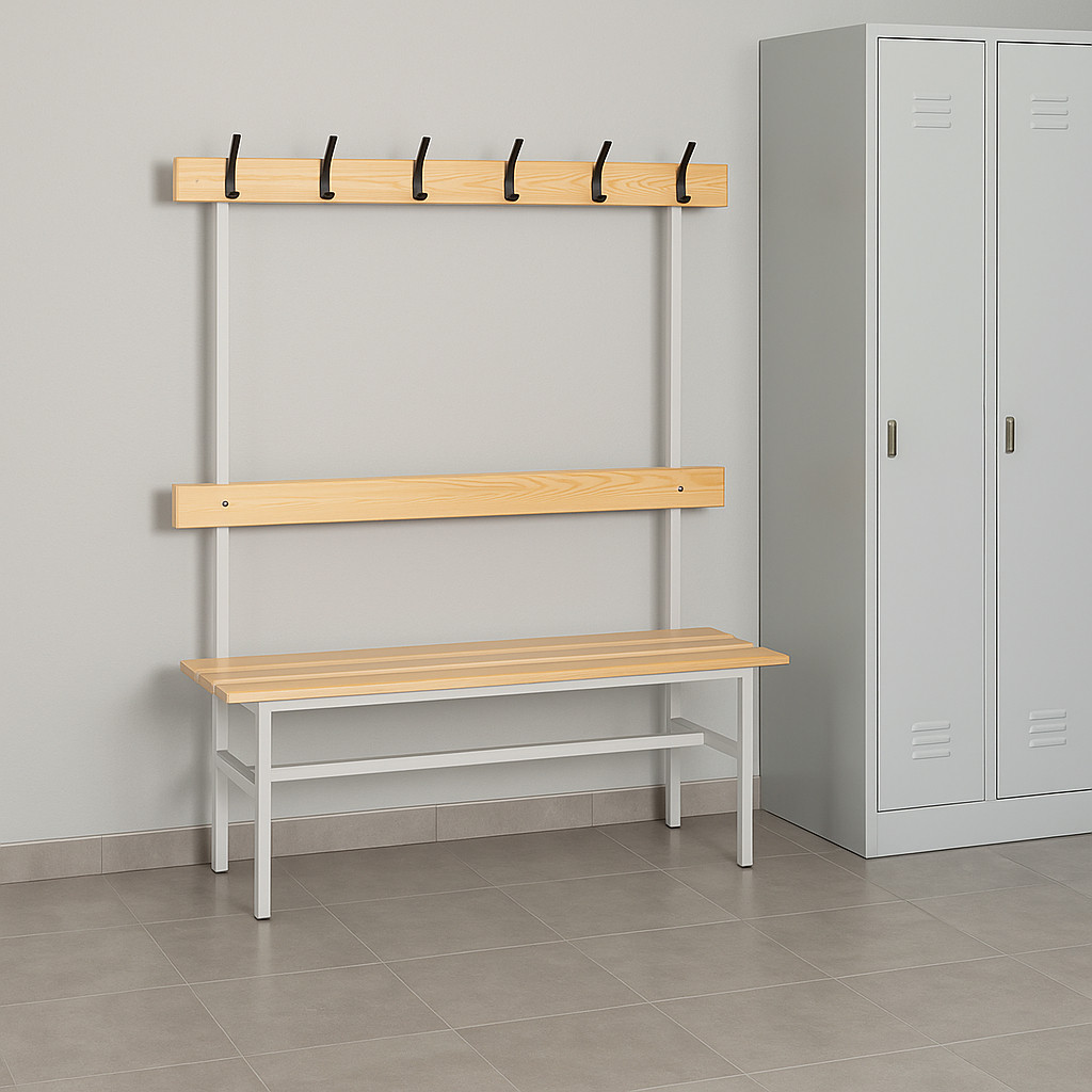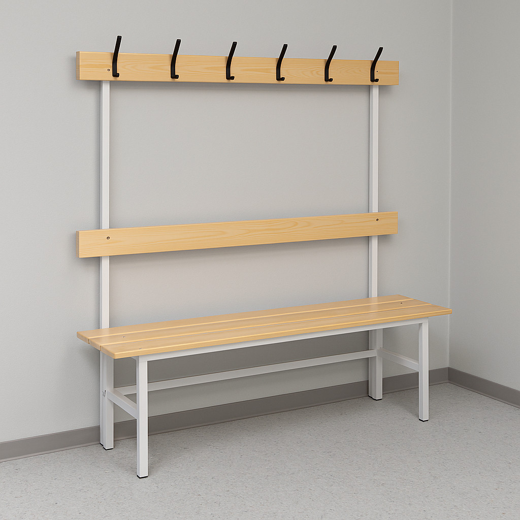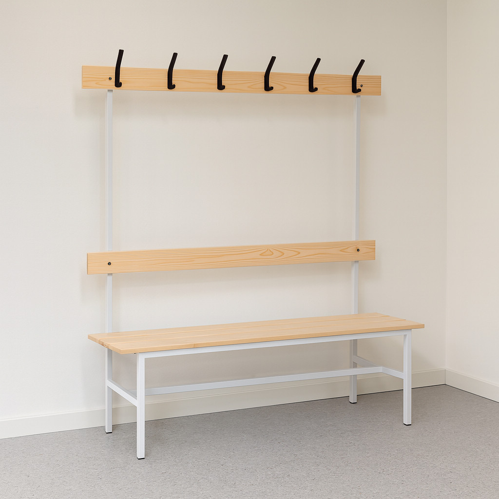 - Šatní lavice jednostranná s opěrkou a věšáky o délce 1500 mm.