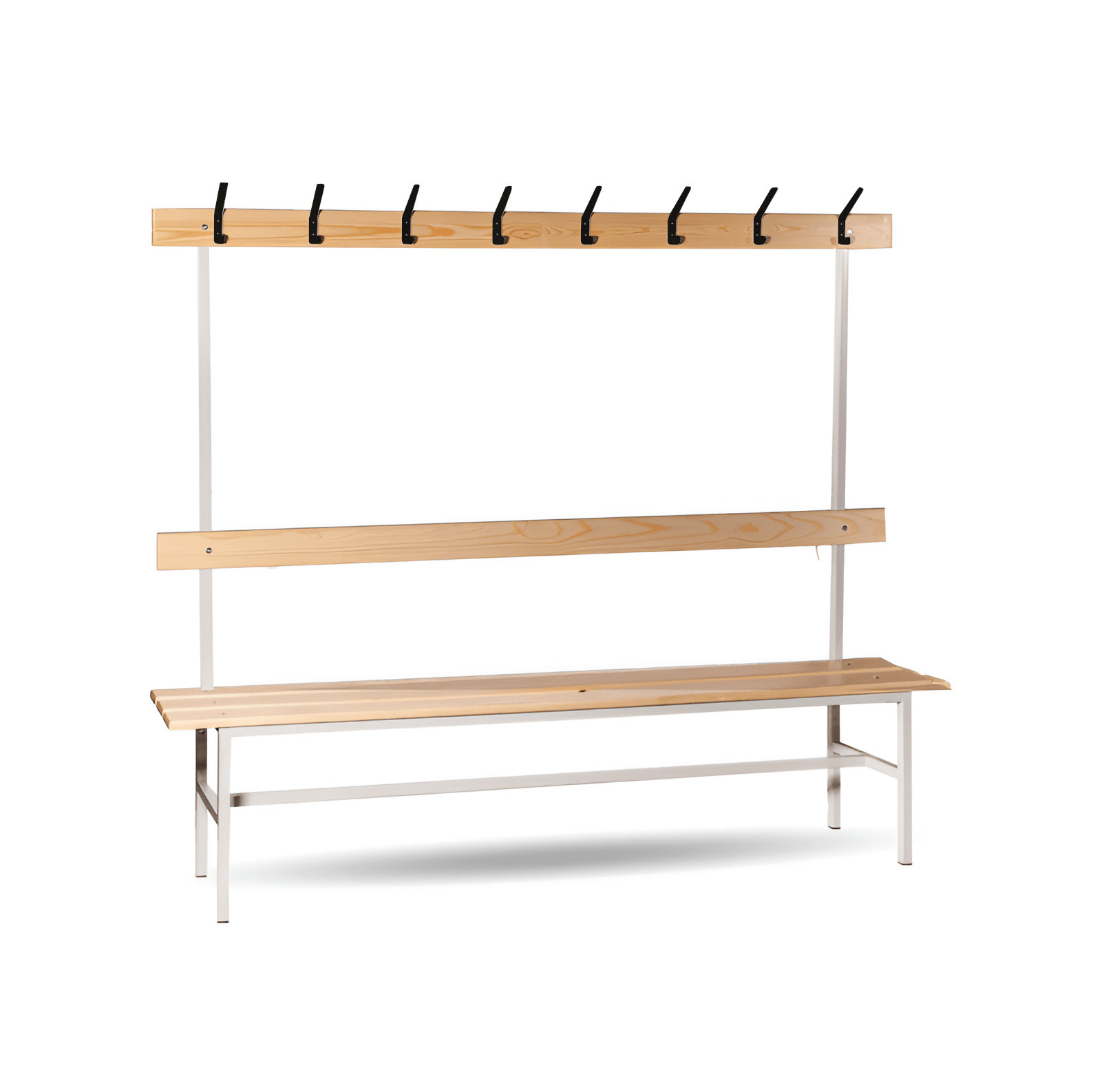 Šatní lavice s opěrkou, věšáky a délkou 2000 mm
