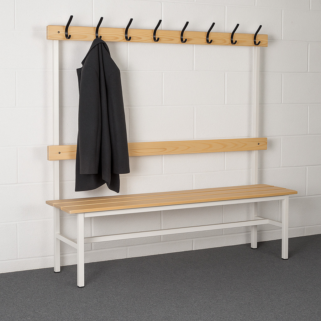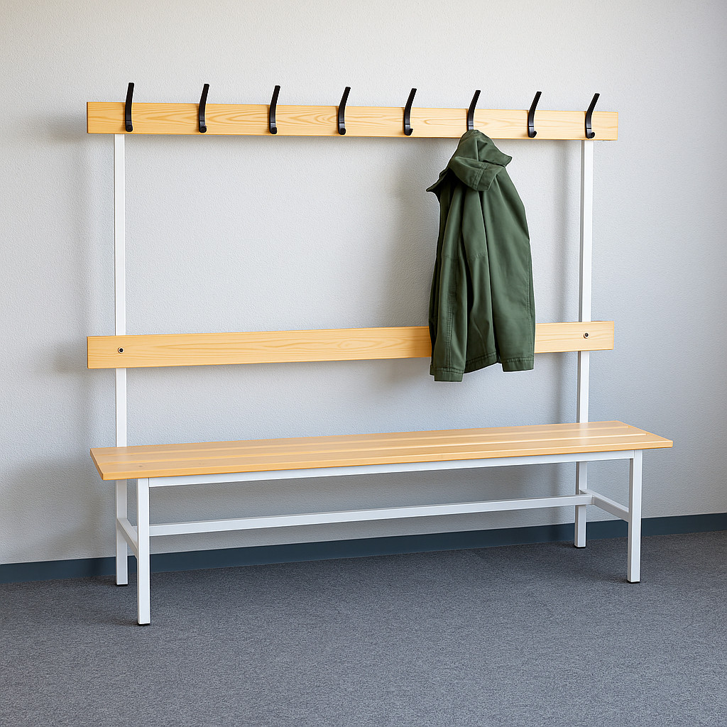 - Šatní lavice jednostranná s opěrkou a věšáky o délce 2000 mm.