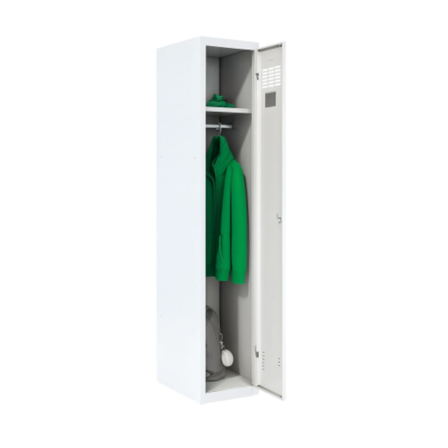 - Základní výbava: odkládací police, tyč na ramínka, držák na ručník, zrcadlo, háčky na věšení šatů, nízký sokl pro více místa ve skříni, větrací otvory v horní a dolní částí dveří, bezpečnostní zámek (s 2 klíči)