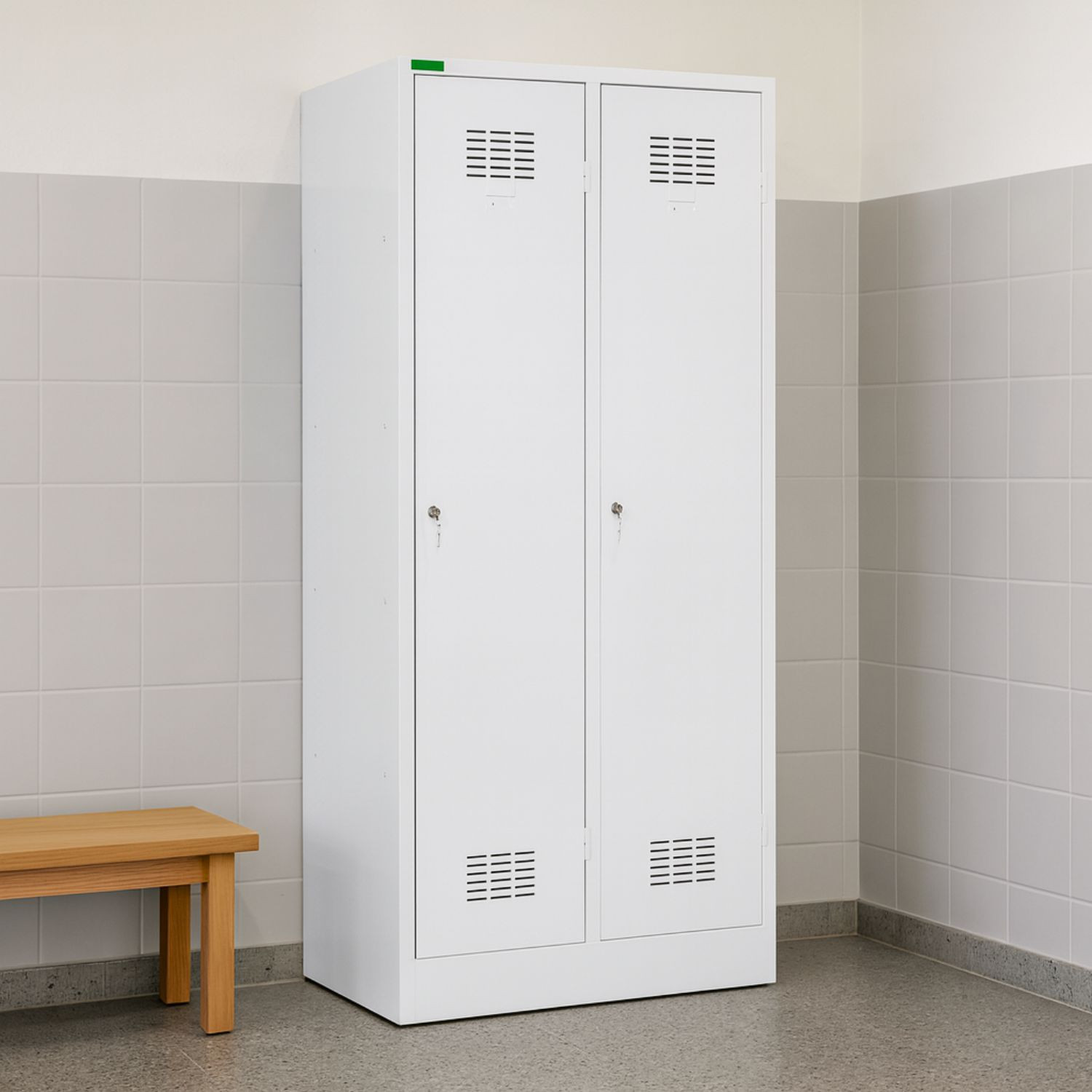 - Základní výbava: police na klobouk, dělící příčka, tyč na ramínka, háčky na věšení šatů, větrací otvory na dvířkách, bezpečnostní zámek (s dvěma klíči), nízký sokl pro více místa ve skříni.