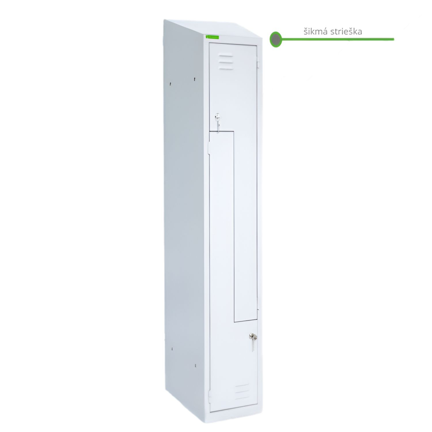 - Základní výbava: tyč na ramínka a háčky na věšení šatů, větrací otvory na dvířkách, bezpečnostní zámek (s dvěma klíči), nízký sokl pro více místa ve skříni.