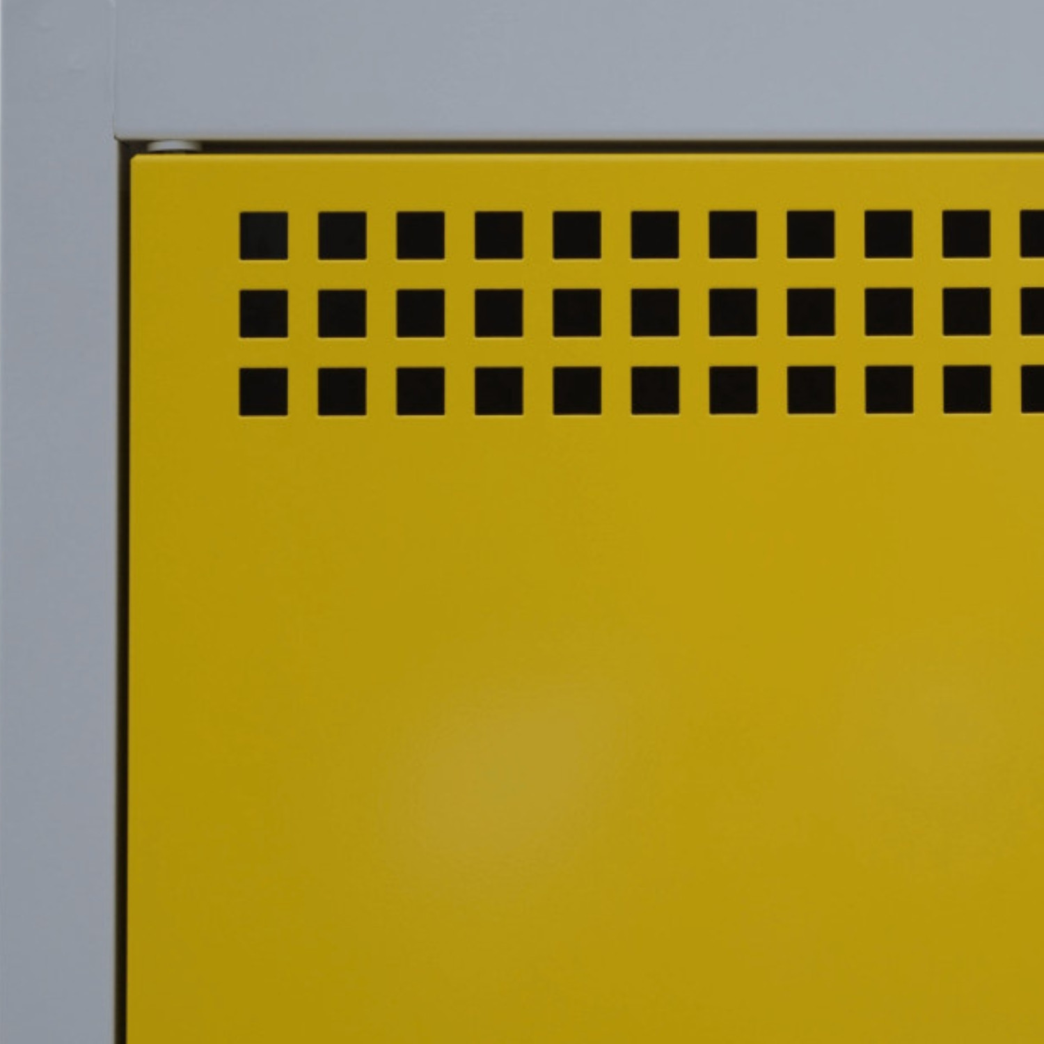 - Základní barva: skelet - RAL 7035 / světle šedá a dveře - RAL 1023 / dopravní žlutá.
