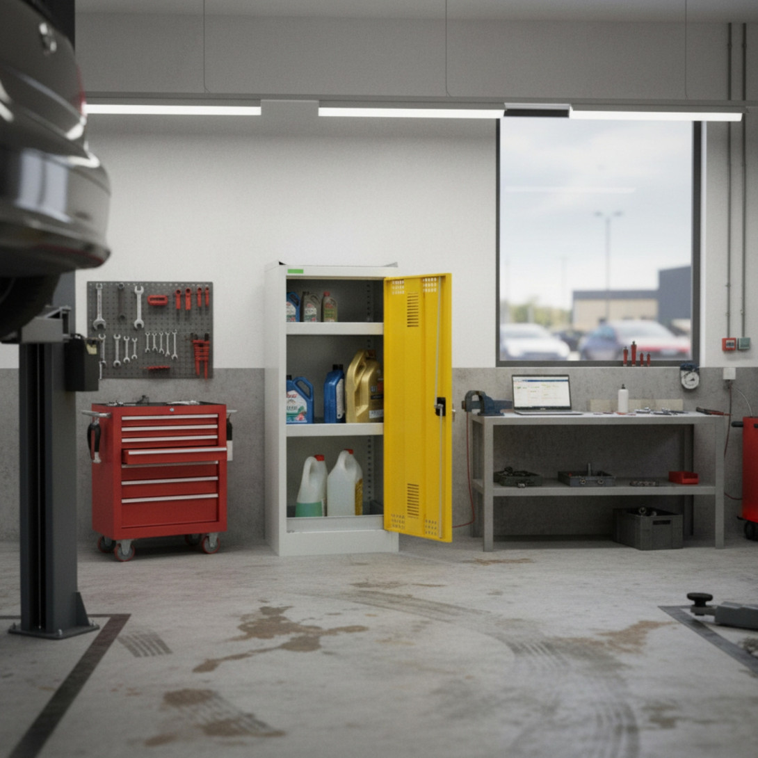 Nízká a úzká skříň na chemikálie