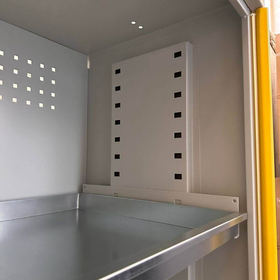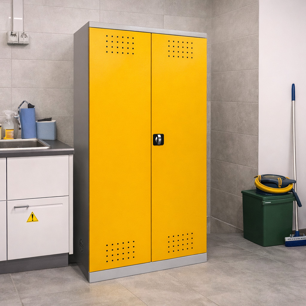 - Základní barva: skelet - RAL 7035 / světle šedá a dveře - RAL 1023 / žlutá dopravní