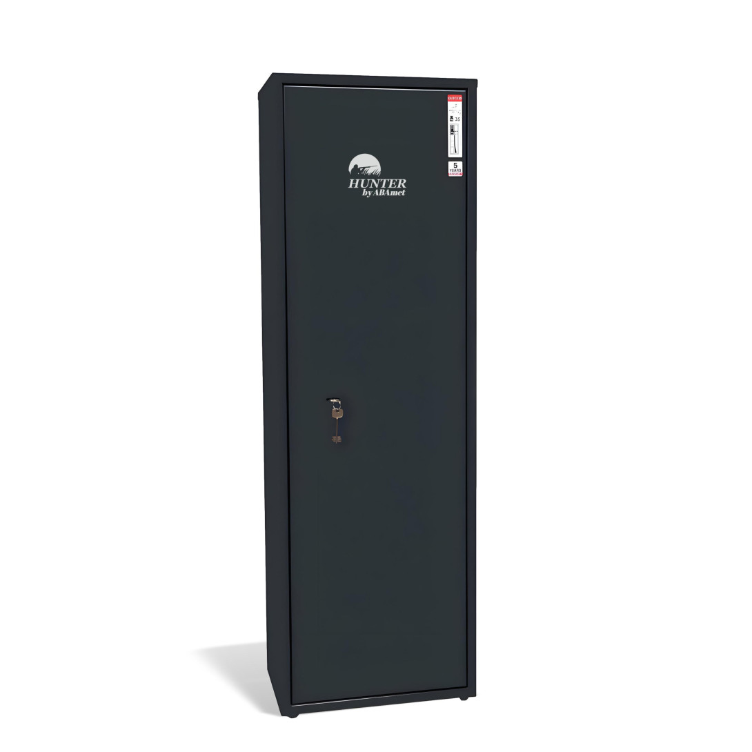 Skříň je k dispozici v elegantní antracitové barvě (RAL 7016) s vnitřním objemem 130 litrů. Tloušťka dvířek je 2,4 mm a ve spodní části skříňky je houbová vložka, která zabraňuje sklouznutí zbraní. Pevná konstrukce poskytuje ochranu proti vloupání díky speciálním "spojkám" a obsahuje vnitřní pant proti proříznutí, který zabraňuje proříznutí. Skříň lze ukotvit do podlahy i do zdi. Výrobek je svařovaný a dodává se kompletně smontovaný. Tloušťka dvířek je 2,4 mm a na dně skříňky je houbová vložka, která zabraňuje sklouznutí zbraní. Pevná konstrukce poskytuje ochranu proti vloupání díky speciálním "spojkám" a obsahuje vnitřní pant proti proříznutí , který zabraňuje proříznutí. Skříň lze ukotvit do podlahy i do zdi. Výrobek je svařovaný a dodává se kompletně smontovaný .