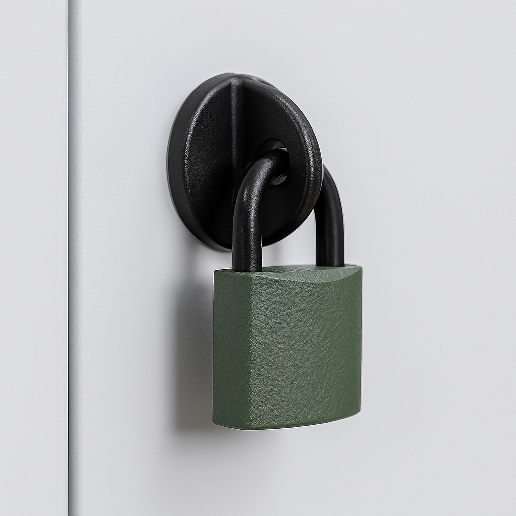 - Uzávěr na visací zámek se otáčí o 360 stupňů, proto se vložka zámku nemá o co opřít a není možné ji vypáčit ze dveří